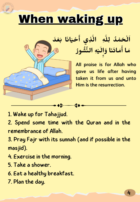 'When Waking Up’ Illustrated Daily Sunnah Page for My Deen Kids’ Book