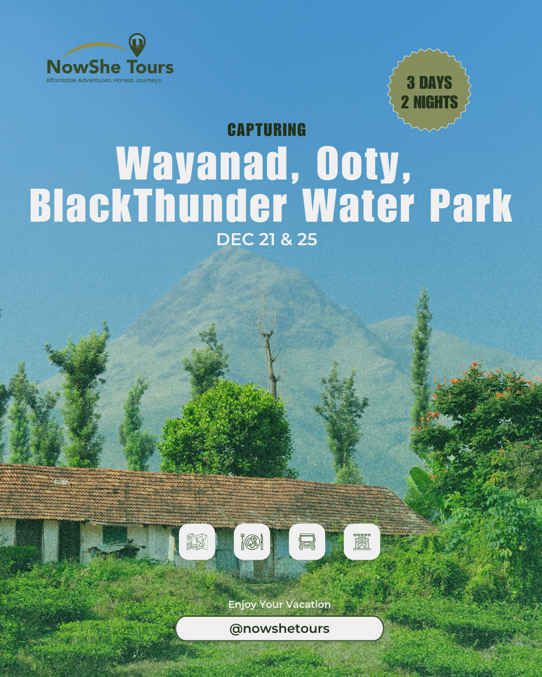NowShe Tours provides curated travel experiences that focus on affordability, honesty, and comfort. We help travelers explore new places with transparent pricing, safe planning, and memorable journeys.